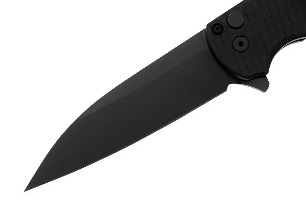 Pro-Tech is known for its button lock mechanism. Possibly the best on the market in terms of performance. You open the blade with the flipper, then the lock holds the blade in place. Thanks to the natural position of your thumb next to the lock when you open the blade, the blade can also be closed quickly with the button lock. The action is super smooth thanks to the ceramic ball bearings — it strongly encourages the urge to fidget!